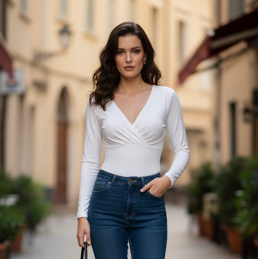 La Reine White Fitted Pleated Cropped Wrap Basic