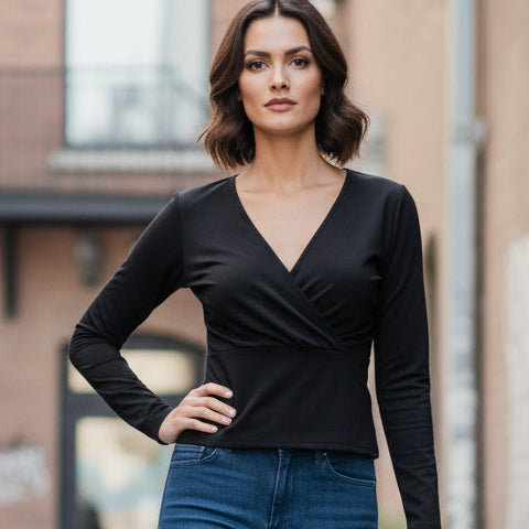 بلوزة أنيقة من La Reine باللون الأزرق الفاتح بأكمام قصيرة غير متماثلة