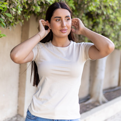 La Reine Round Neck Beige Long Sleeve Basic Top