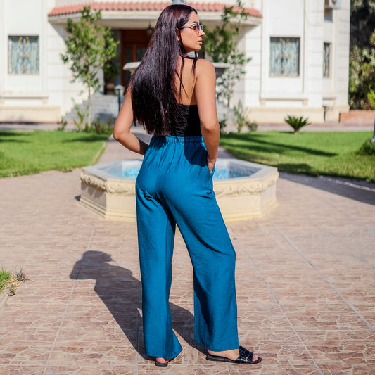 La Reine Teal Linen Wide Leg Pants High Waisted With Tie