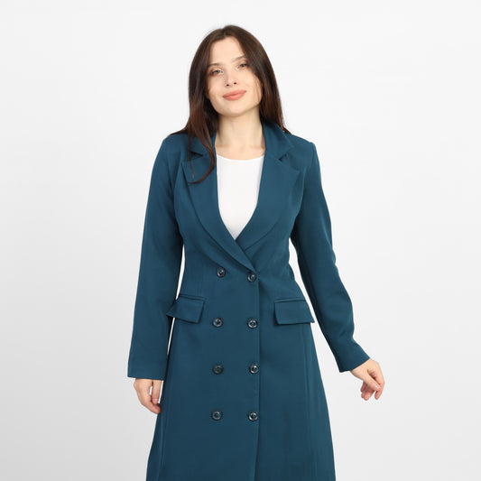La Reine Teal Double-Breasted Blazer with Contrast Buttons