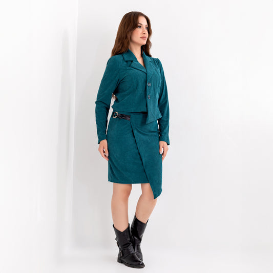 La Reine Elegant Jade Velvet Jacket with Skirt, Suit Set