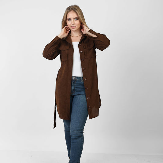 La Reine Brown Fitted Pleated Cropped Wrap Basic