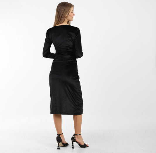 La Reine Black Elegant Wrap Velvet Midi Dress