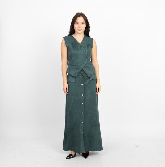 La Reine Teal Double-Breasted Blazer with Contrast Buttons