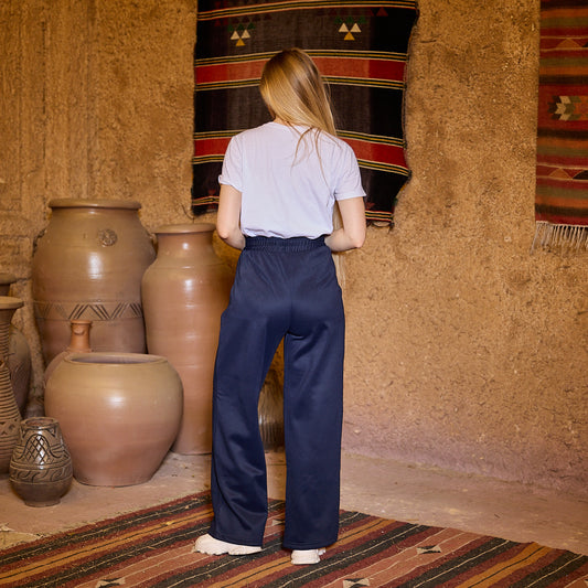 La Reine Blue Black Relaxed Fit Wide-Leg Jogger Pants