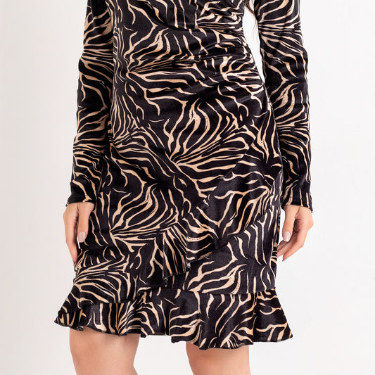 La Reine Long Sleeve Zebra Velvet Mini Dress