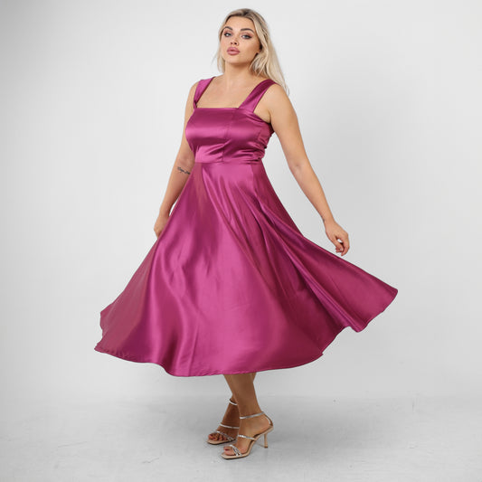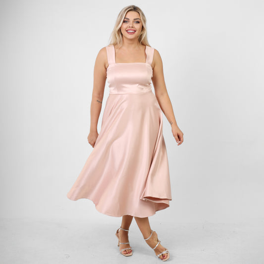 La Reine Rose Ruched Satin wide Midi Satin Dress