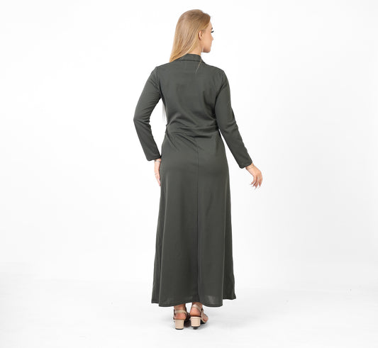 La Reine Notched Top Long Sleeve A-Line Maxi Olive Dress